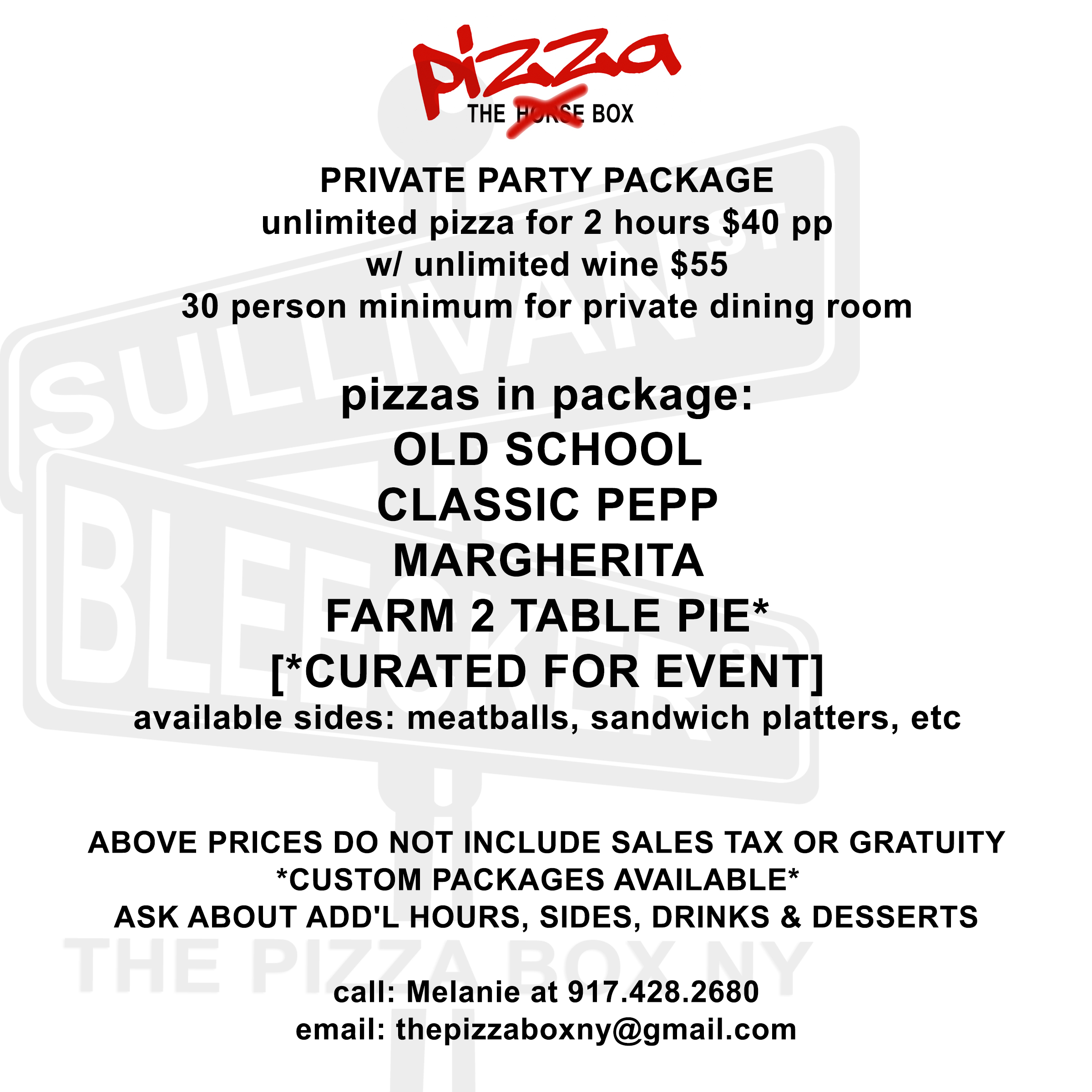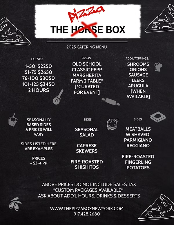 Whether you’re feeding 25 or 125 people, we have handcrafted pies, seasonal sides, and custom toppings that’ll steal the show. Click below to see what’s on the menu and book your event with The Pizza Box.